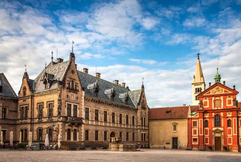 Situé face à l’entrée du château de Prague, ce palais baroque construit entre 1562 et 1660 est la résidence de l’archevêque de Prague. Sa façade richement décorée domine la place Hradčanské, illustrant la puissance de l’Église catholique.