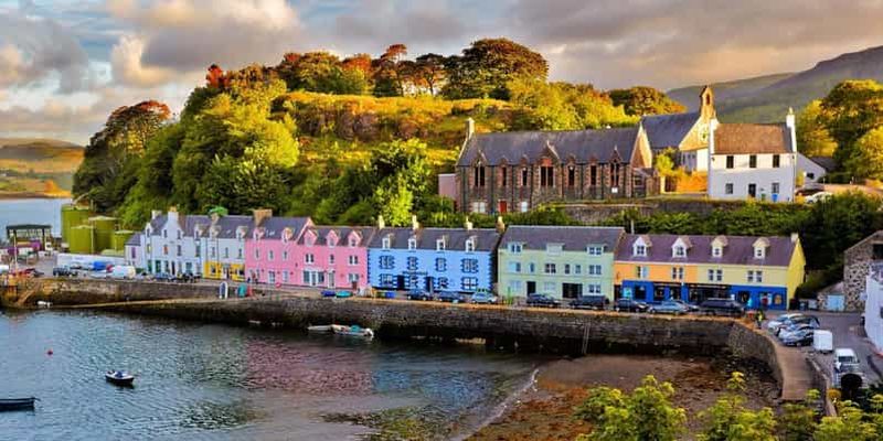 Portree, principale ville de l’Île de Skye, abrite un port pittoresque entouré de maisons colorées. Fondée au début du XIXe siècle, elle est devenue un centre animé avec commerces, restaurants et hébergements pour tous les budgets. Son front de mer est un lieu idéal pour admirer les bateaux de pêche ou prendre un ferry vers les îles voisines. De nombreuses randonnées partent de Portree, offrant un accès aux paysages environnants.