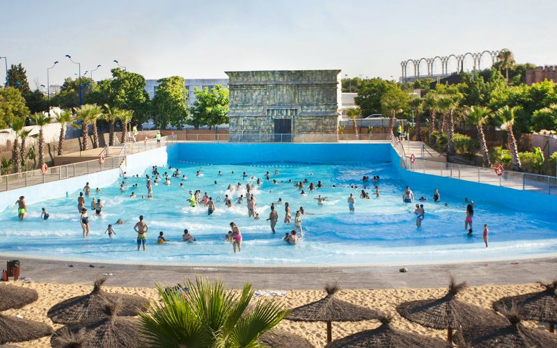 Ouvert en 2014, Agua Mágica est un parc aquatique situé juste à côté d’Isla Mágica. Il propose une plage artificielle avec du sable, une piscine à vagues, des toboggans et des zones de jeux pour enfants. C’est l’endroit idéal pour se rafraîchir durant l’été andalou et profiter d’une ambiance conviviale. Les vestiaires, les transats et les points de restauration ajoutent au confort de la visite.