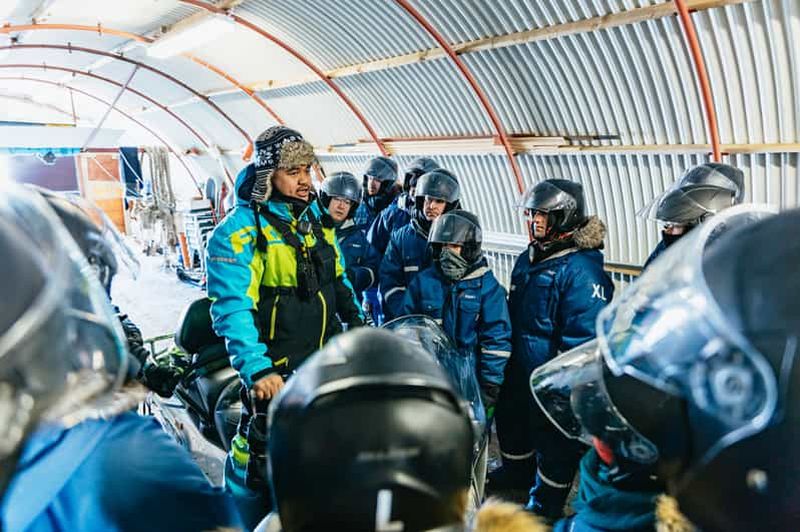 Cette option prévoit la prise en charge dans divers hôtels et lieux de prise en charge désignés dans le centre de Reykjavik. La prise en charge débute 30 minutes avant l'heure de départ. Deux personnes partagent une motoneige.