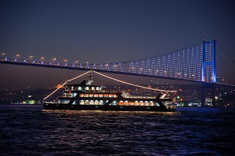 Découvrez Istanbul avec vos proches sous les lumières du Bosphore lors d'un dîner-croisière en soirée avec boissons à vo...