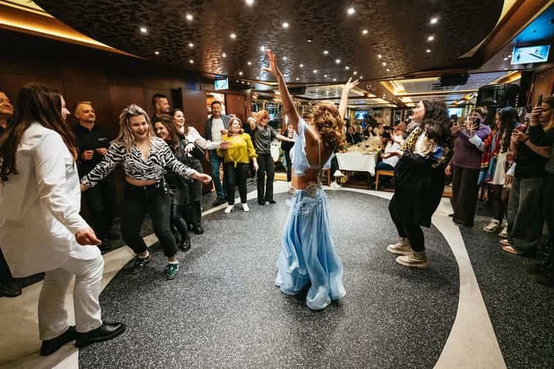 Veuillez sélectionner cette option pour un dîner-croisière avec boissons non alcoolisées à volonté et boissons alcoolisées locales à volonté (vin, vodka, raki, bière ou gin). La prise en charge et le retour à l'hôtel sont inclus.