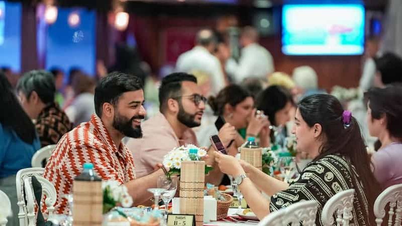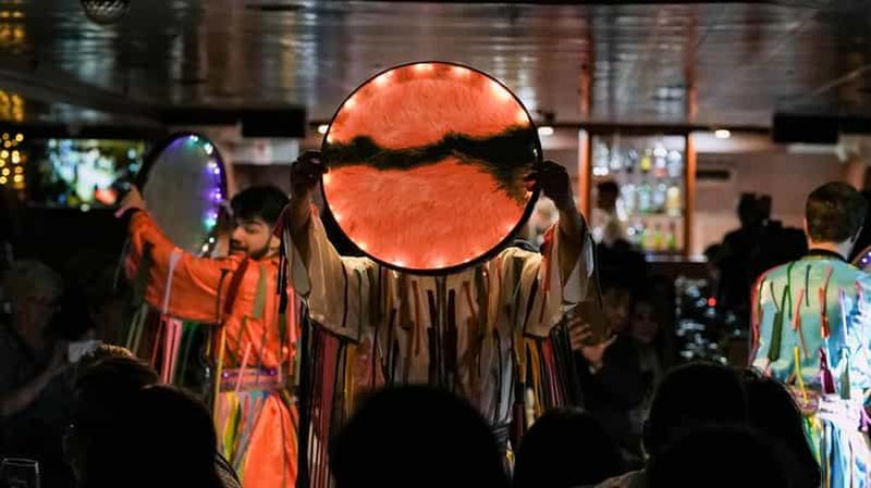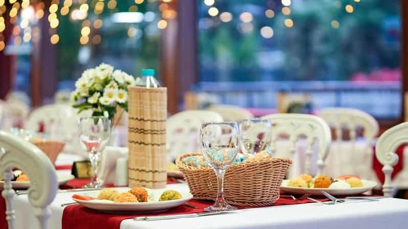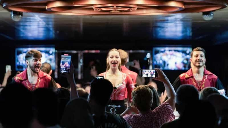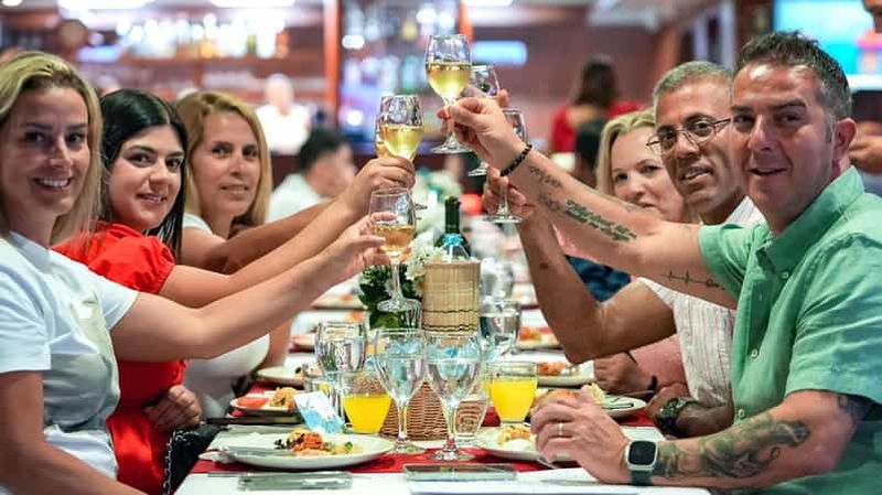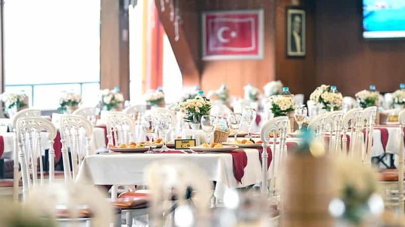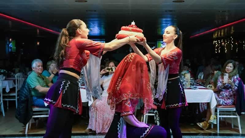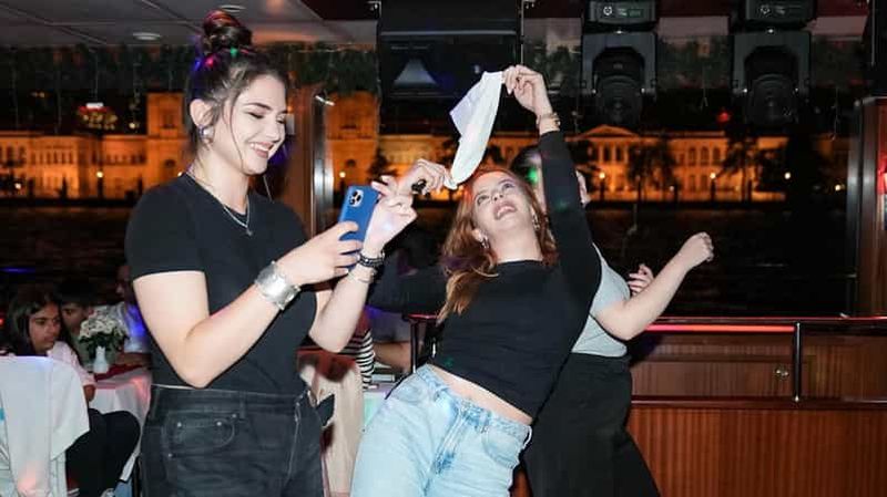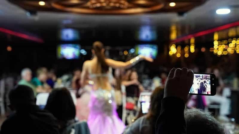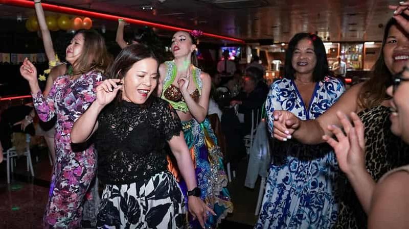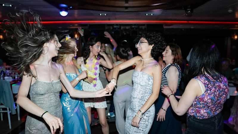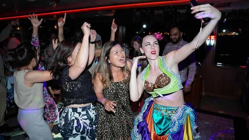 Profitez d'un vaste menu pour le dîner (poulet à la sauce curry, poulet grillé, bœuf sauté, daurade grillée, falafels et options végétariennes), de boissons non alcoolisées à volonté et de tables VIP garanties à proximité de la scène, avec des spectacles turcs nocturnes et un DJ professionnel.