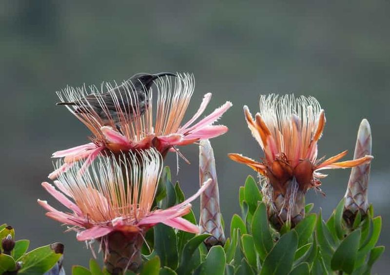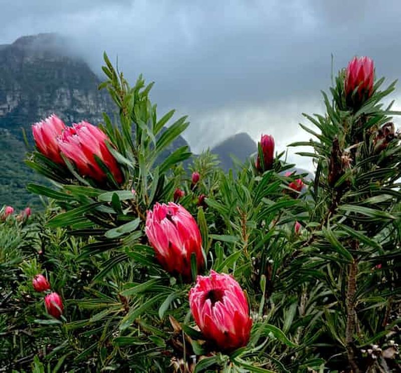 L’aire dédiée aux protéas met en valeur la fleur emblématique d’Afrique du Sud, la Protéa roi, et plusieurs espèces voisines. Créée dans les années 1950, cette section florale présente un écosystème montagnard typique du fynbos. Les protéas, qui fleurissent principalement de l’hiver au printemps, offrent un spectacle coloré et typique du Cap. Les sentiers sinueux permettent d’observer de près ces fleurs robustes et variées, qui symbolisent la diversité végétale sud-africaine.