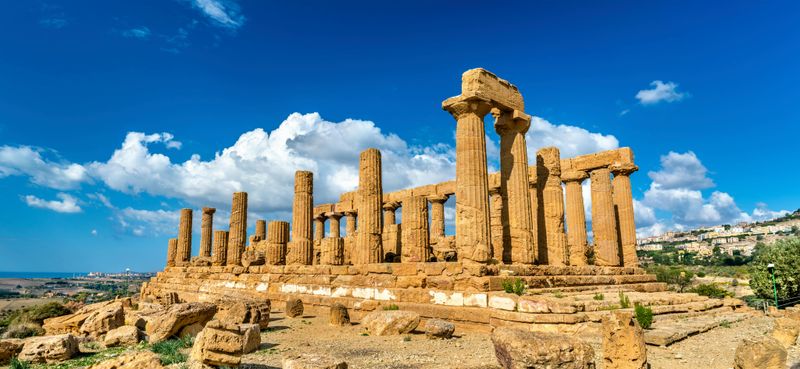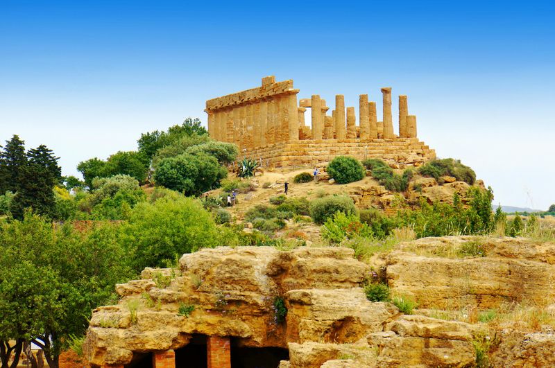 À proximité du Jardin de la Kolymbethra, les temples antiques d’Agrigente offrent un aperçu de la grandeur de la civilisation grecque en Sicile, entre le Vème et le IVème siècle av. J.-C. Parmi ces édifices remarquables, vous retrouvez le Temple de la Concorde, de Junon, d’Héraclès, de Zeus ou encore de Castor et Pollux. Leurs colonnes majestueuses et sculptures raffinées illustrent l’inégalable talent artistique et la ferveur religieuse de l’époque.