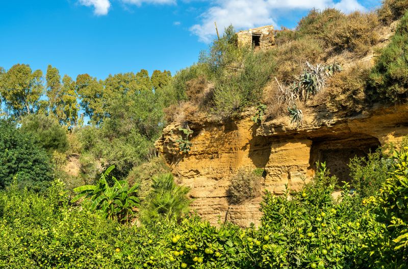 Les anciennes galeries d’irrigation du Jardin de la Kolymbethra sont un remarquable vestige d’ingénierie hydraulique datant de l’époque grecque, entre le Vème et le IIIème siècle av. J.-C. Creusées sous la colline, elles alimentaient autrefois la cité d’Akragas en eau potable et irriguaient les terres agricoles environnantes. Aujourd’hui, vous pouvez explorer ces tunnels souterrains fascinants, où l’on observe encore les traces antiques des techniques utilisées pour canaliser et stocker l’eau.