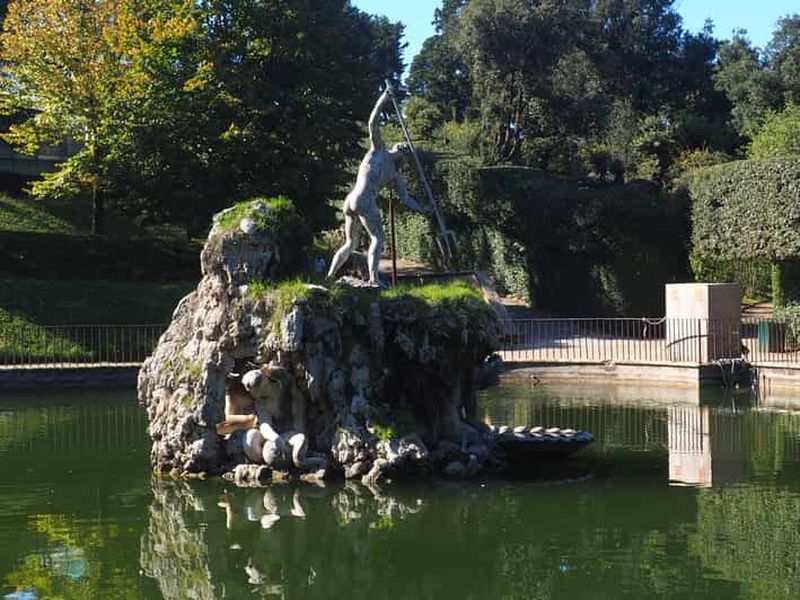 L’Isolotto, îlot pittoresque situé au cœur des jardins, héberge la Fontaine de l’Océan, chef-d’œuvre du sculpteur Giambologna datant de la fin du XVIe siècle. La statue centrale incarne le titan Atlas soutenant la sphère céleste, entouré de figures marines et d’animaux fantastiques. Relié par deux élégants ponts ornés de balustrades, ce havre est propice à la contemplation.