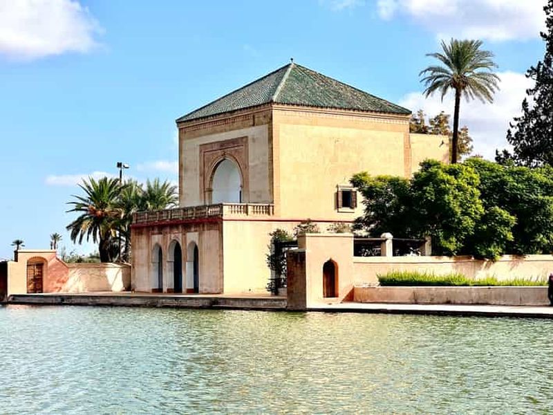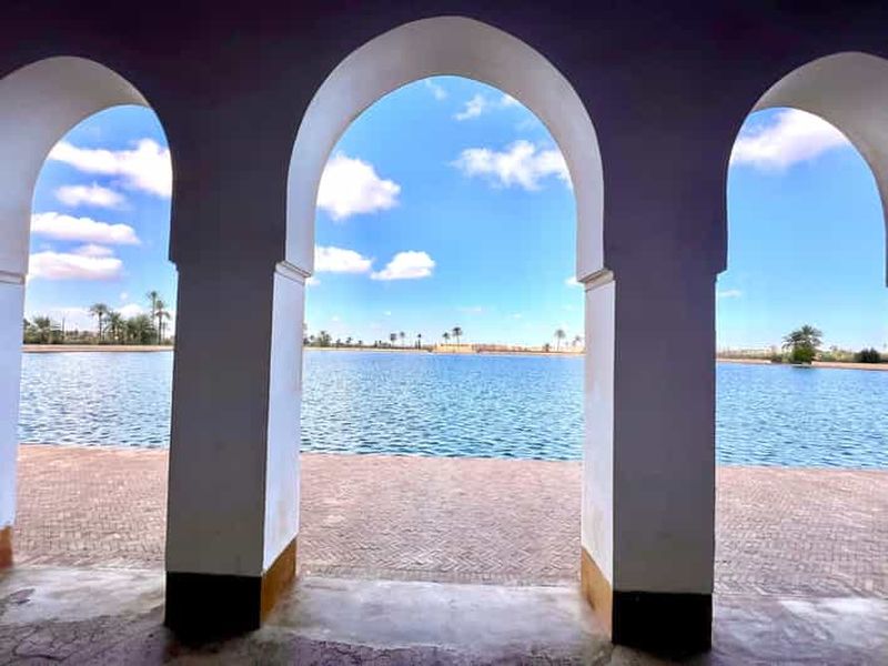 Explorez le pavillon et les jardins de La Ménara avec une vue imprenable sur les montagnes de l'Atlas, enrichie par notr...