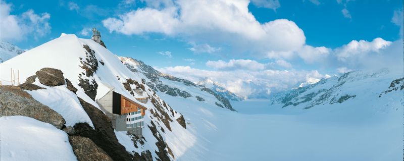 La construction du célèbre Observatoire Sphinx a démarré en 1931 et s’est achevée en 1937, à 3 571 mètres d’altitude. Depuis sa terrasse panoramique, vous profitez d’une vue imprenable sur les pics enneigés de l’Eiger, du Mönch et de la Jungfrau. Des installations modernes permettent d’observer le ciel dans des conditions exceptionnelles, faisant de ce site un lieu de recherche unique. Vous pourrez également admirer le panorama spectaculaire sur l’Aletsch, le plus long glacier d’Europe.