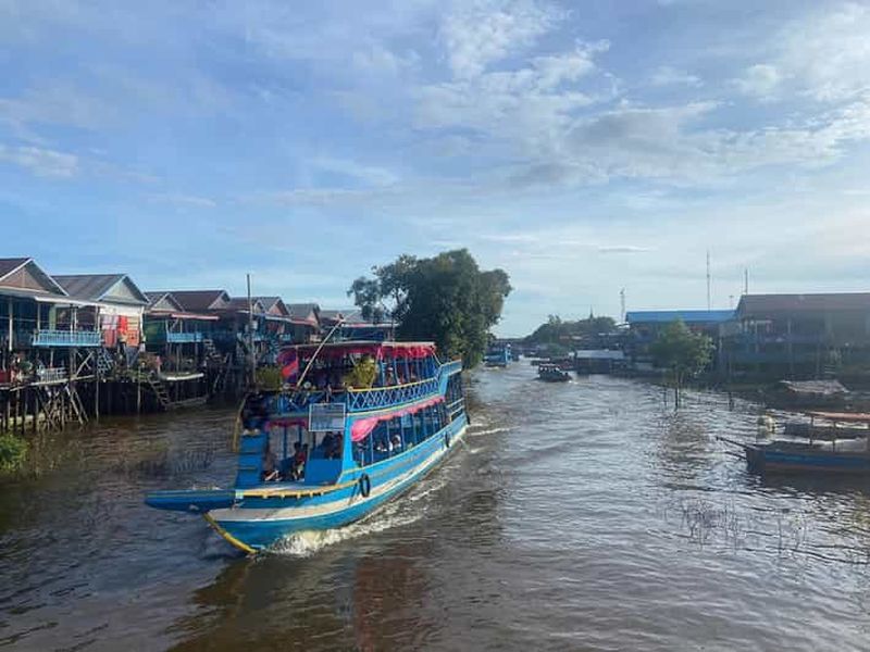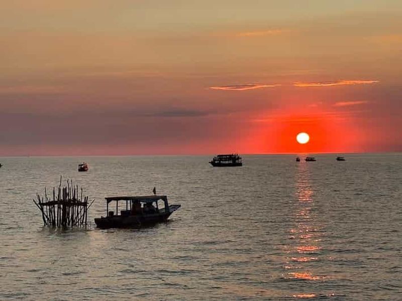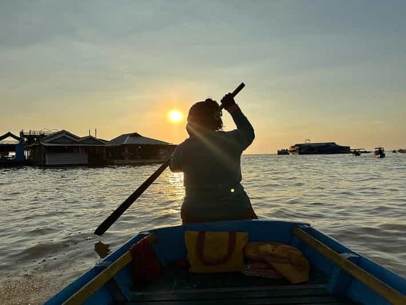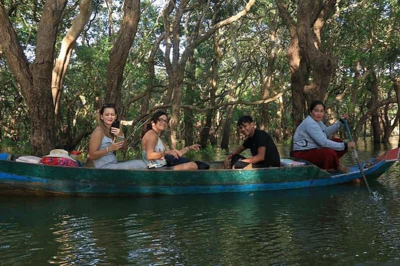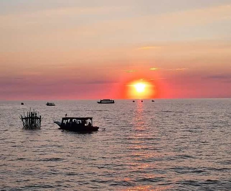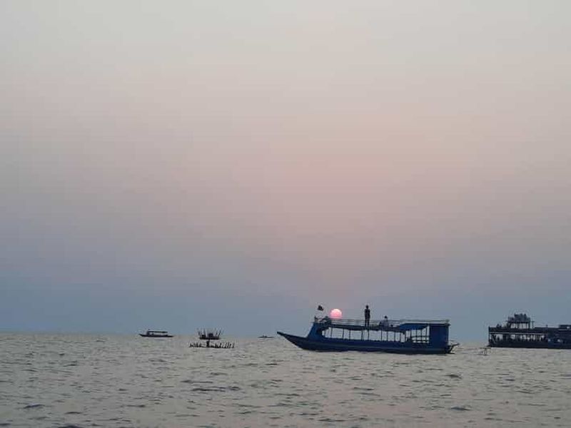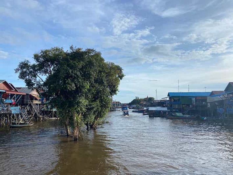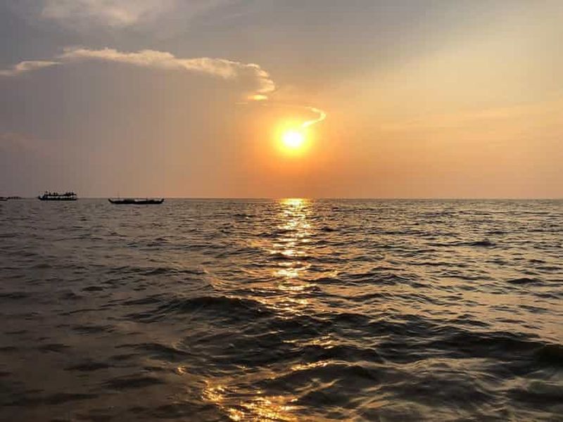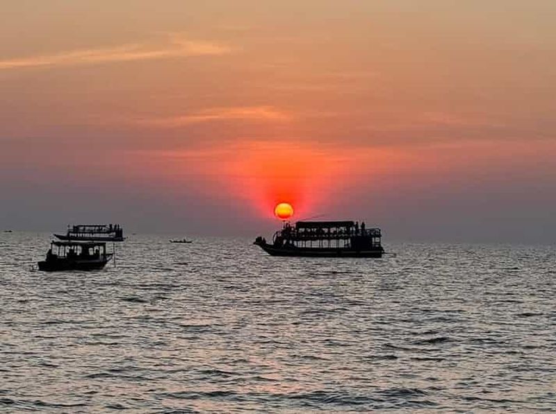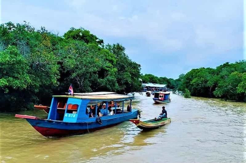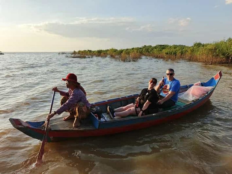 Profitez d'une sortie en bateau pour observer les maisons sur pilotis, les maisons flottantes et la vie locale le long de la rivière. À la fin de la journée, profitez d'une croisière paisible à travers la forêt de mangrove et assistez à un magnifique coucher de soleil sur le lac Tonlé Sap, une expérience mémorable sur l'eau.