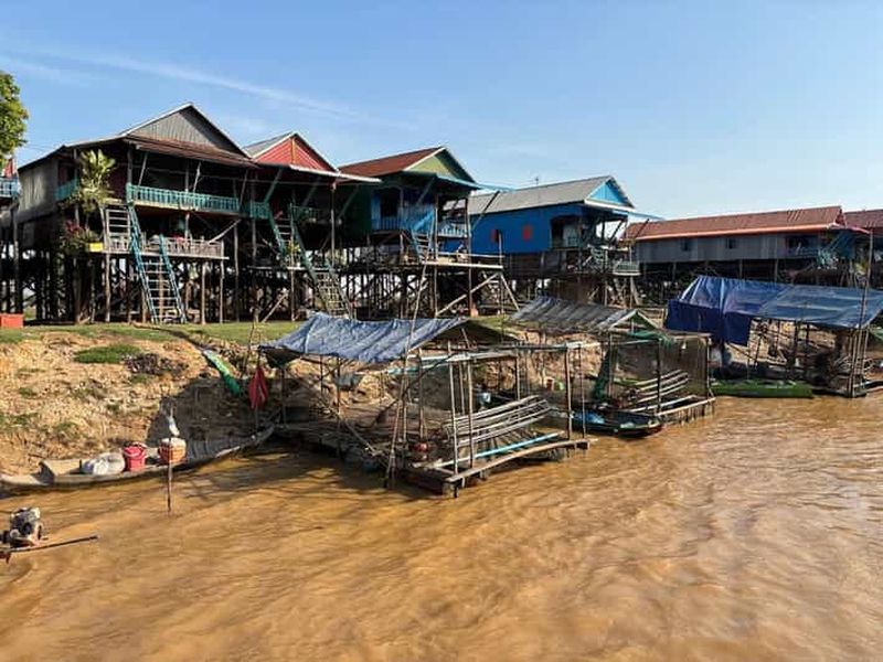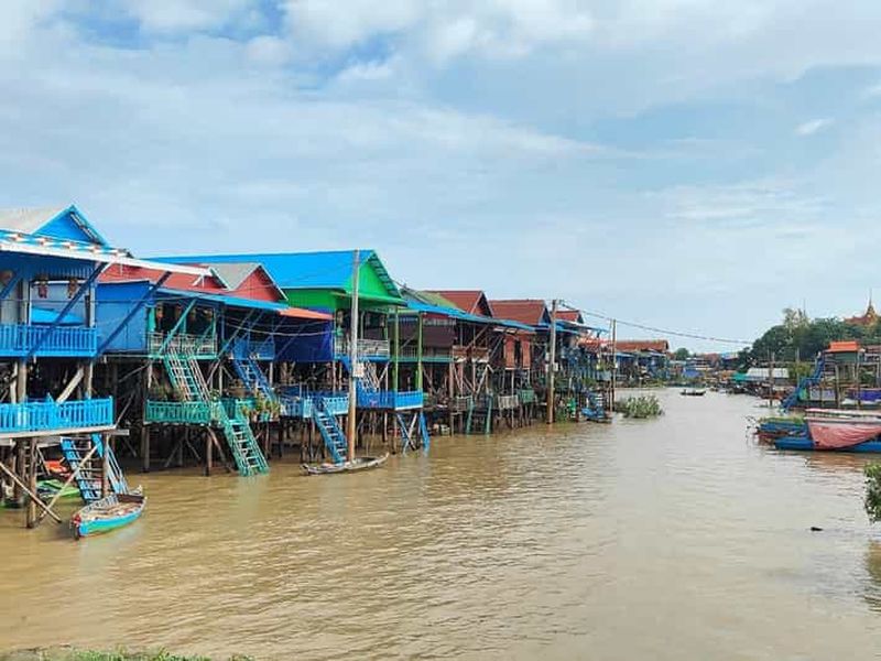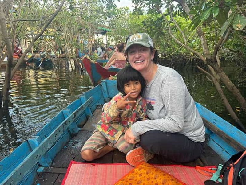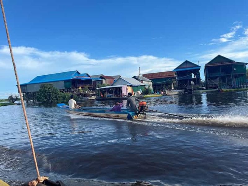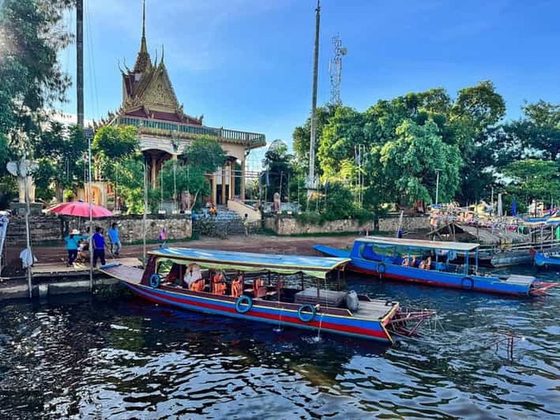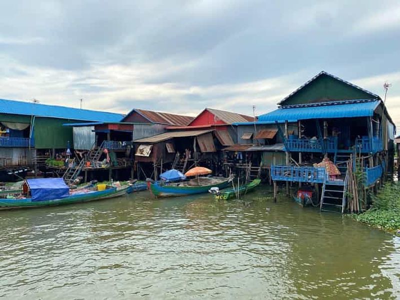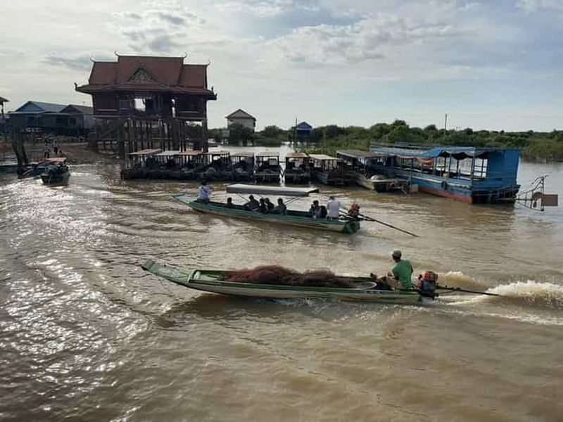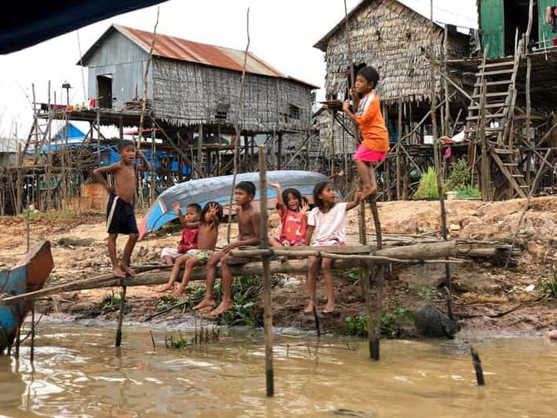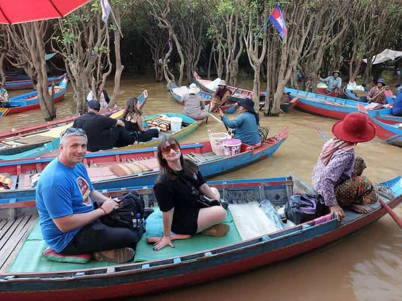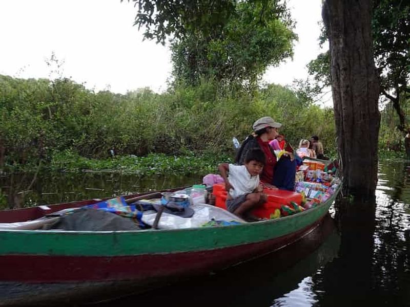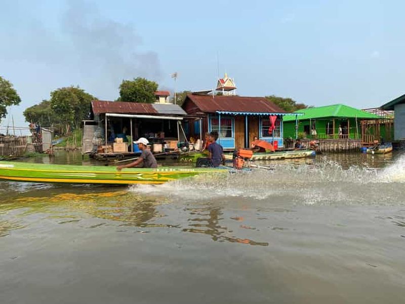 Profitez d'une sortie en bateau pour observer les maisons sur pilotis, les maisons flottantes et la vie locale le long de la rivière. À la fin de la journée, profitez d'une croisière paisible à travers la forêt de mangrove et assistez à un magnifique coucher de soleil sur le lac Tonlé Sap, une expérience mémorable sur l'eau.