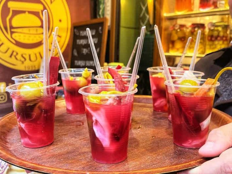 Dégustez une cuisine de rue authentique d'Istanbul avec un menu sans viande composé de jus de cornichons, d'un wrap végétarien çiğ köfte, de collations locales et d'un dessert sambali. Idéal pour les végétariens à la recherche de saveurs locales authentiques.
