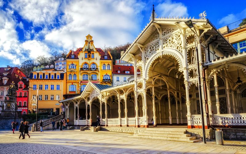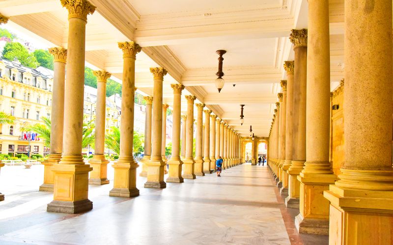 Construite entre 1871 et 1881 par Josef Zítek, architecte du Théâtre national de Prague, cette colonnade néo-Renaissance abrite cinq sources thermales. Elle constitue l’un des symboles emblématiques des cures thermales à Karlovy Vary.
