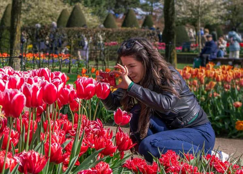 Pour atteindre le magnifique parc de Keukenhof, sachez qu’il ne se situe pas directement dans le centre d’Amsterdam, mais à environ 35 kilomètres au sud-ouest de la ville, à Lisse. Pour vous y rendre, prenez le train depuis Amsterdam jusqu’à la gare de Schiphol, ou bien la station de Leiden. Ensuite, un bus direct vous mènera à destination en environ 30 minutes. Depuis la gare centrale d’Amsterdam, le trajet total dure approximativement 1 heure. Bien que Keukenhof ne soit pas accessible à pied depuis les principales attractions d’Amsterdam, les liaisons en transport public sont fréquentes et efficaces.