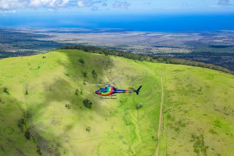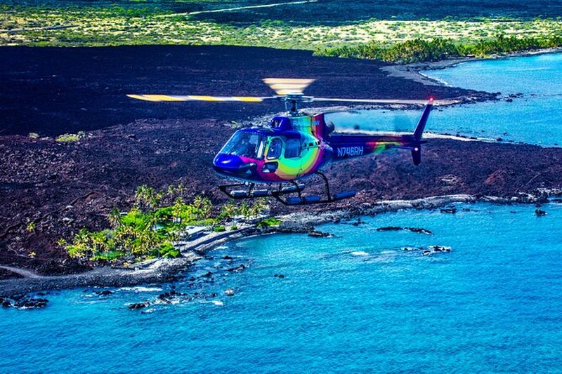 Embarquez pour une visite inoubliable en hélicoptère de la grande île d'Hawaï, planant au-dessus du volcan Kilauea en ér...
