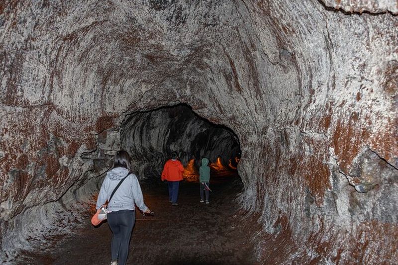 Le tunnel de lave Thurston (Nāhuku) est un passage souterrain formé il y a environ 500 ans, lorsque la lave brûlante a creusé la roche basaltique. Éclairé, ce corridor de 180 mètres impressionne par ses parois lisses et son ambiance. Les fougères luxuriantes qui bordent l’entrée rappellent la résilience de la végétation après l’activité volcanique.