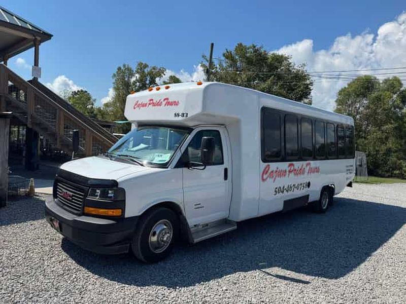Cette option inclut le transport aller-retour depuis de nombreux hôtels de La Nouvelle-Orléans. La navette Cajun Pride Swamp Tours sera blanche avec des lettres rouges. Par respect pour tous les voyageurs et pour des raisons d'hygiène, il est interdit de manger et de boire dans la navette.