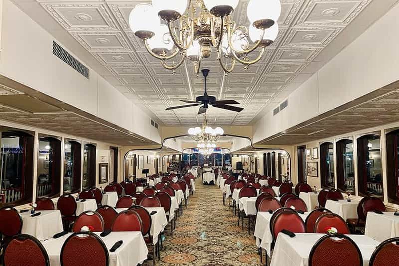 La croisière se déroule à bord du Riverboat CITY of NEW ORLEANS (navire jumeau du Steamboat NATCHEZ). Dîner buffet inclus : l'embarquement est prévu de 18h00 à 19h00. Le bateau part à 19h00 et revient à 21h00. Veuillez entrer dans la salle à manger à 19h45 pour le dîner.