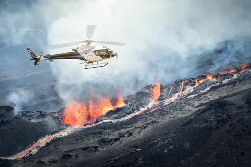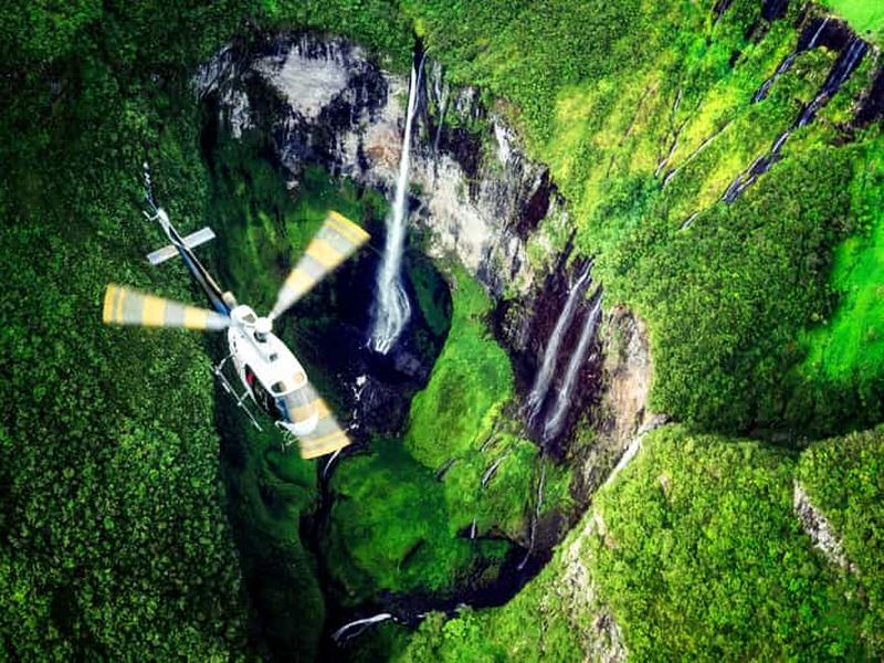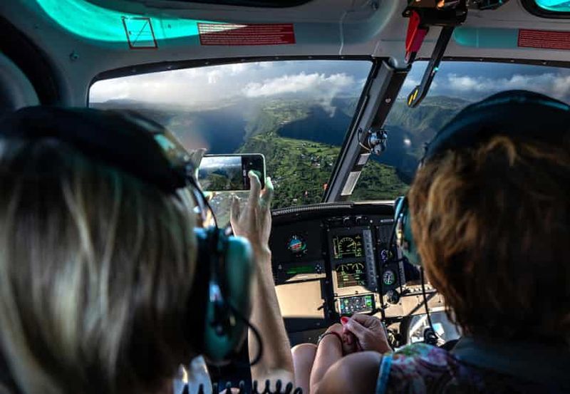 Survolez La Réunion en hélicoptère et découvrez les cirques majestueux, le Piton de la Fournaise et les cascades spectac...