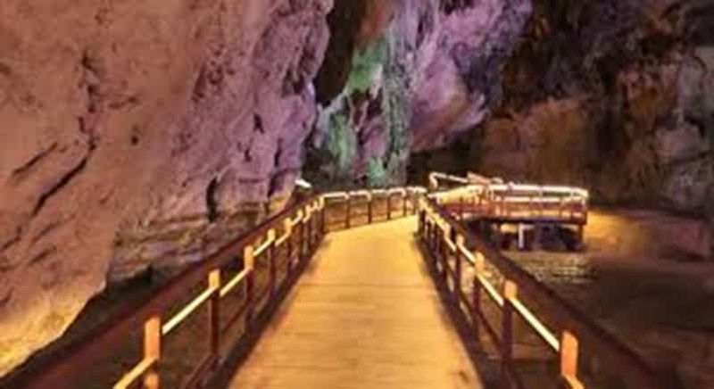 À quelques kilomètres au sud du lac, la grotte Hua Ma (ou « grotte des revenants ») se mérite après l’ascension de plusieurs centaines de marches à flanc de montagne. Contrairement aux grottes inondées, celle-ci est sèche et dévoile une immense salle souterraine. Bien éclairée et aménagée pour la visite, elle impressionne par la densité et la variété de ses concrétions millénaires, stalagmites et colonnes calcaires.