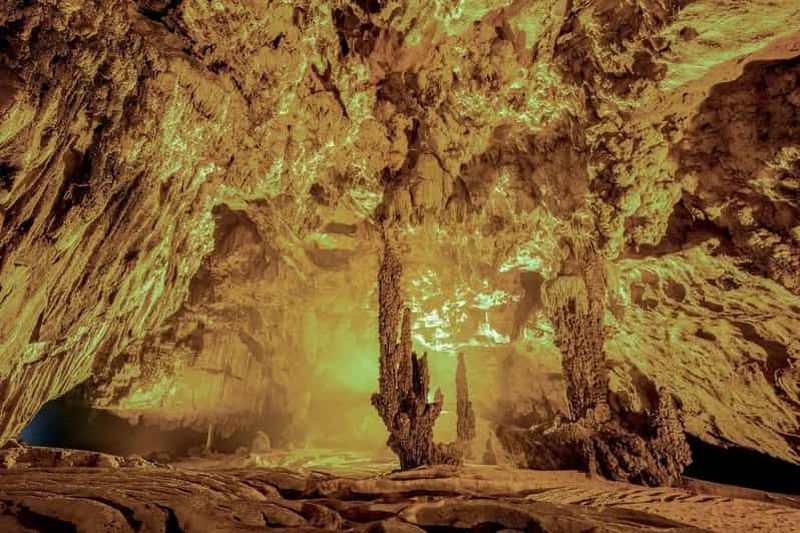 Accessible par voie fluviale, la grotte Puong offre un spectacle géologique saisissant où la rivière Nang a creusé son chemin à travers la montagne calcaire. En traversant ce tunnel naturel long de 300 mètres et haut de 30 mètres, le bateau glisse dans la pénombre, révélant au passage des stalactites aux formes étranges. Le plafond de la voûte abrite par ailleurs une importante colonie de chauves-souris, souvent visibles lors de la traversée.