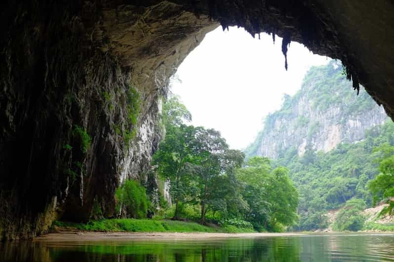 Accessible par voie fluviale, la grotte Puong offre un spectacle géologique saisissant où la rivière Nang a creusé son chemin à travers la montagne calcaire. En traversant ce tunnel naturel long de 300 mètres et haut de 30 mètres, le bateau glisse dans la pénombre, révélant au passage des stalactites aux formes étranges. Le plafond de la voûte abrite par ailleurs une importante colonie de chauves-souris, souvent visibles lors de la traversée.