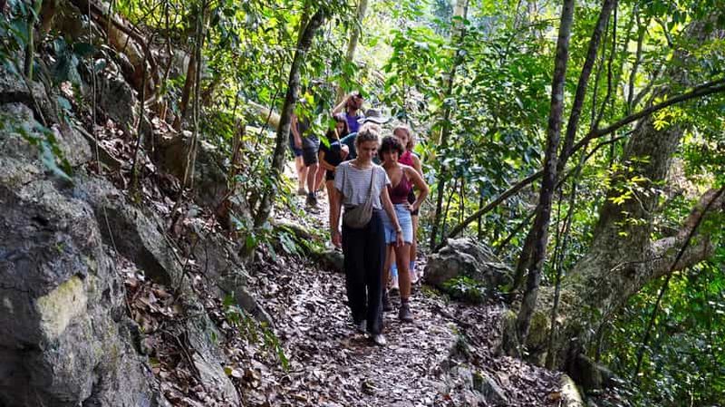 La visite des chutes de Dau Dang nécessite généralement de débarquer pour une marche à travers la forêt primitive et les rochers. Ce site marque l’endroit où la rivière Nang, bloquée par un éboulis de rochers géants, se transforme en une série de rapides puissants s’étalant sur près d’un kilomètre. Le sentier pour y accéder offre une belle immersion dans la flore du parc et permet parfois de faire une halte dans les petits hameaux avoisinants.