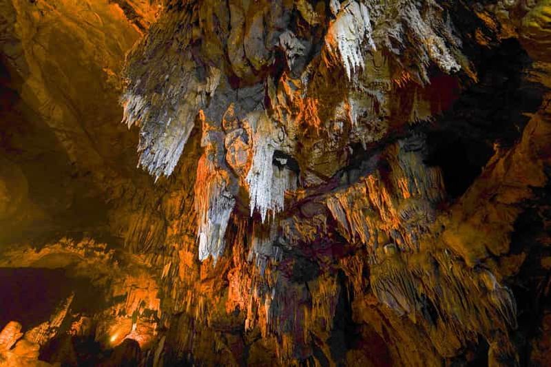 À quelques kilomètres au sud du lac, la grotte Hua Ma (ou « grotte des revenants ») se mérite après l’ascension de plusieurs centaines de marches à flanc de montagne. Contrairement aux grottes inondées, celle-ci est sèche et dévoile une immense salle souterraine. Bien éclairée et aménagée pour la visite, elle impressionne par la densité et la variété de ses concrétions millénaires, stalagmites et colonnes calcaires.