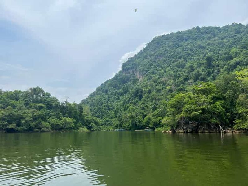 Accessible par voie fluviale, la grotte Puong offre un spectacle géologique saisissant où la rivière Nang a creusé son chemin à travers la montagne calcaire. En traversant ce tunnel naturel long de 300 mètres et haut de 30 mètres, le bateau glisse dans la pénombre, révélant au passage des stalactites aux formes étranges. Le plafond de la voûte abrite par ailleurs une importante colonie de chauves-souris, souvent visibles lors de la traversée.