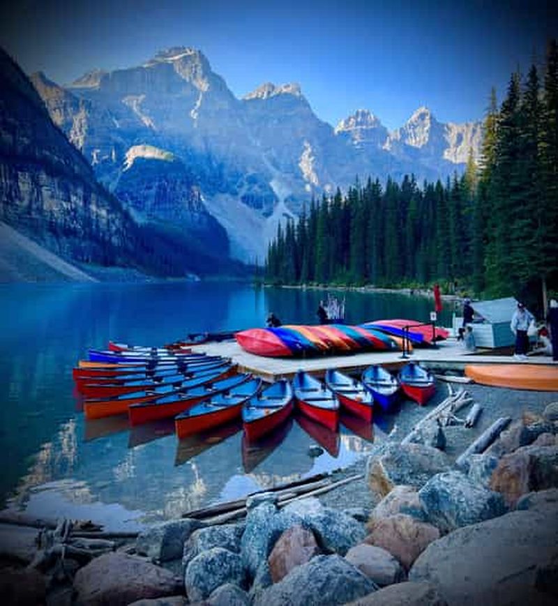 Glisser sur les eaux turquoise du lac en canoë est une tradition qui remonte aux débuts du tourisme alpin, bien avant que la route ne soit goudronnée. En pagayant face au monumental glacier Victoria, vous échappez à la foule des rives pour vous immerger dans le silence impressionnant du cirque glaciaire. Cette expérience, accessible durant la belle saison, offre une perspective rare sur l’immensité des paysages et la couleur unique de l’eau, alimentée directement par la fonte des glaces.
