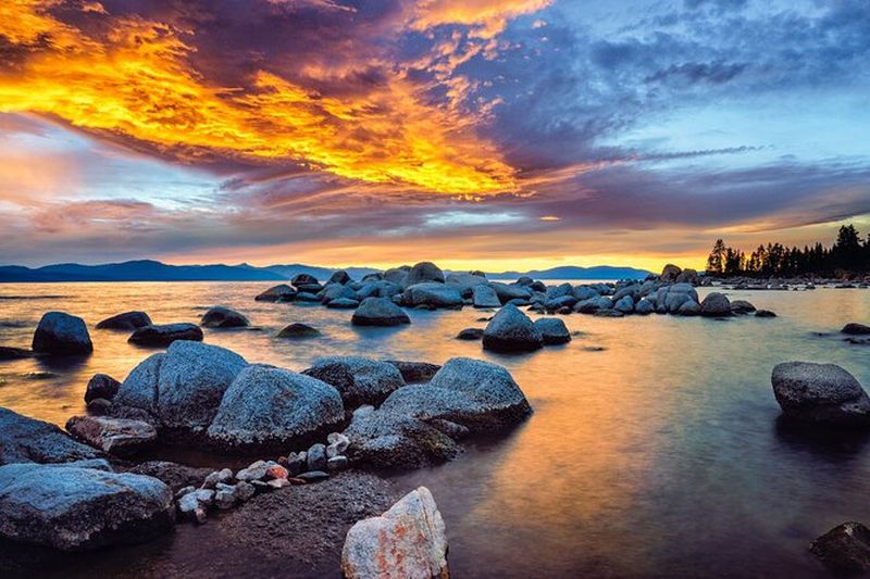 Le littoral du Lac Tahoe abrite de superbes plages, dont Sand Harbor au nord-est et Kings Beach sur la rive nord. Sand Harbor se distingue par ses rochers granitiques et ses eaux limpides, idéales pour la baignade ou propices au snorkeling. De son côté, Kings Beach fournit une ambiance animée avec cafés et aires de pique-nique. Les couchers de soleil y sont mémorables, illuminant le lac d’une lueur dorée.