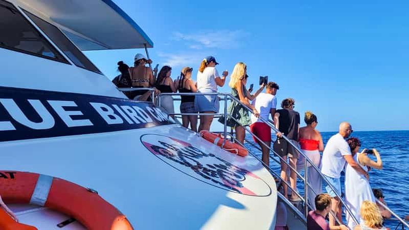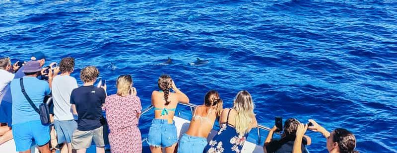 Montez à bord d'un catamaran confortable et partez pour une croisière d'observation des dauphins et des baleines au larg...