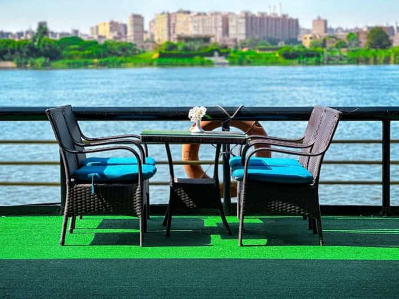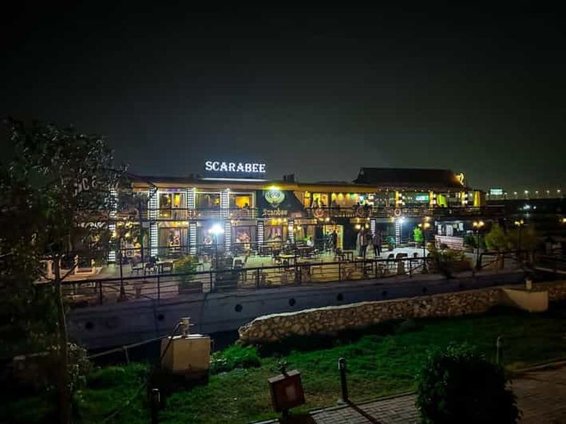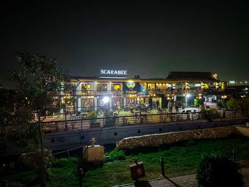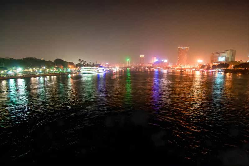 Au fil d’une croisière sur le Nil au Caire, vous dînez à bord d’un bateau-restaurant tout en admirant les rives illuminées, la ligne d’horizon du Caire et les palmiers qui bordent le fleuve. Selon l’excursion choisie (en moyenne 2 à 4 heures), vous profitez d’un buffet égyptien et international, de musique live, de spectacles de danse du ventre, de Tanoura ou de folklore, souvent précédés d’un coucher de soleil sur le Nil et accompagnés de transferts aller‑retour depuis votre hôtel.