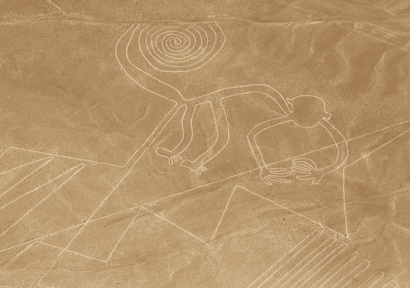 Daté de la même période que les autres géoglyphes nazcas, le Singe dévoile une queue en spirale. Mesurant environ 95 mètres, ce motif précolombien pourrait symboliser la pluie, indispensable pour l’agriculture. Son tracé complexe vous intrigue par sa finesse et requiert un regard aérien pour apprécier toutes ses courbes. Découvert dans les années 1920, il participe grandement à la renommée internationale de ce site classé au Patrimoine mondial de l’UNESCO.