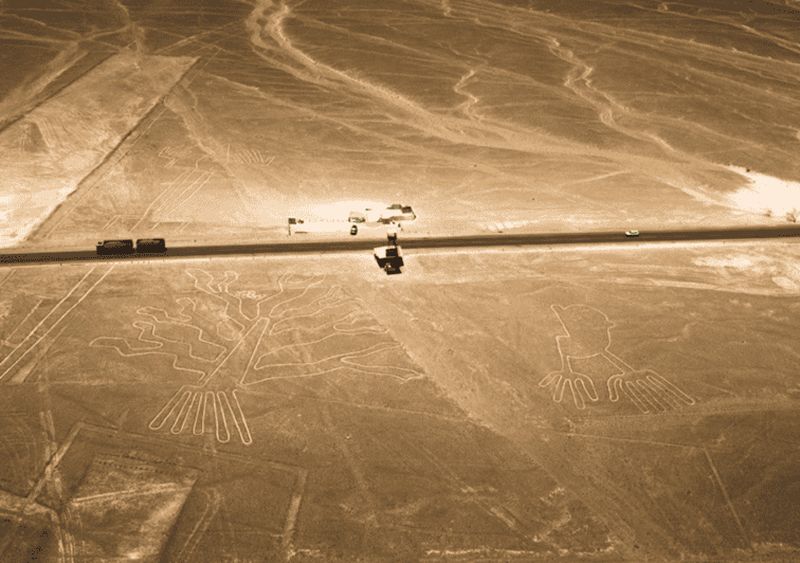 Situé à proximité de l’Arbre, le géoglyphe des Mains représente deux mains humaines dont l’une affiche un doigt tronqué. Cette singularité intrigue les spécialistes qui y voient une référence symbolique ou un simple incident de tracé. Découvert et popularisé par l’archéologue María Reiche, il fait partie des figures les plus renommées du site. Son emplacement, proche du mirador, permet une observation particulièrement directe des détails uniques de cette composition précolombienne.