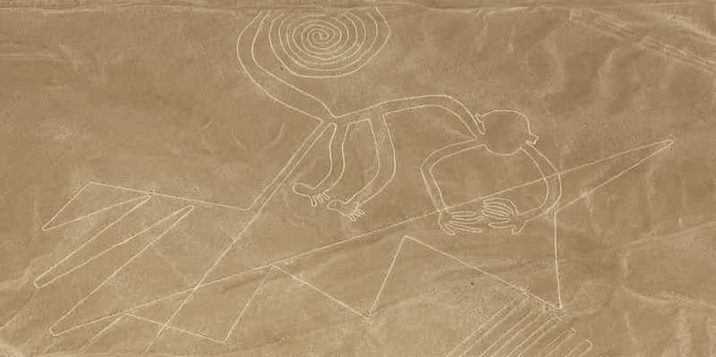 Daté de la même période que les autres géoglyphes nazcas, le Singe dévoile une queue en spirale. Mesurant environ 95 mètres, ce motif précolombien pourrait symboliser la pluie, indispensable pour l’agriculture. Son tracé complexe vous intrigue par sa finesse et requiert un regard aérien pour apprécier toutes ses courbes. Découvert dans les années 1920, il participe grandement à la renommée internationale de ce site classé au Patrimoine mondial de l’UNESCO.