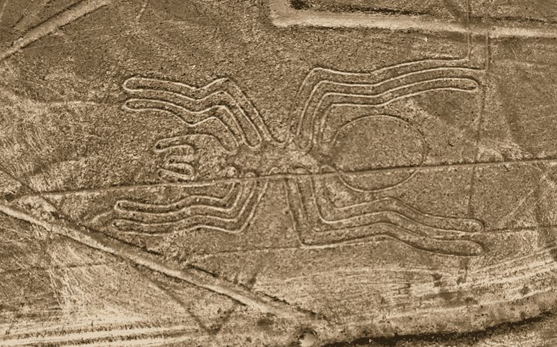 Représentant la précision artistique de la culture nazca, l’Araignée s’étend sur près de 46 mètres de long. Vous découvrirez sa forme proportionnée, évoquant l’habileté des artisans précolombiens. Découverte lors des premières recherches aériennes, elle marquerait l’importance accordée à la fertilité. Certains chercheurs y voient un lien avec des constellations associées à la pluie. Admirer cette araignée géante depuis le ciel témoigne de la prouesse technique des concepteurs de ce dessin.