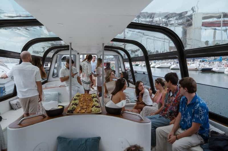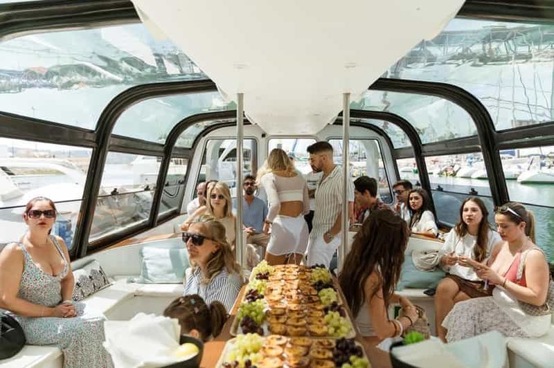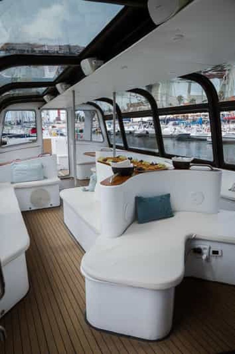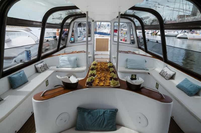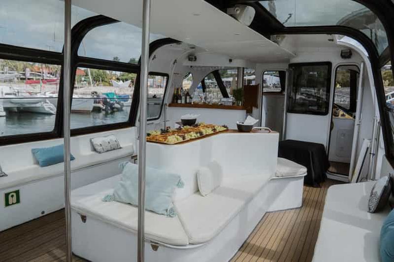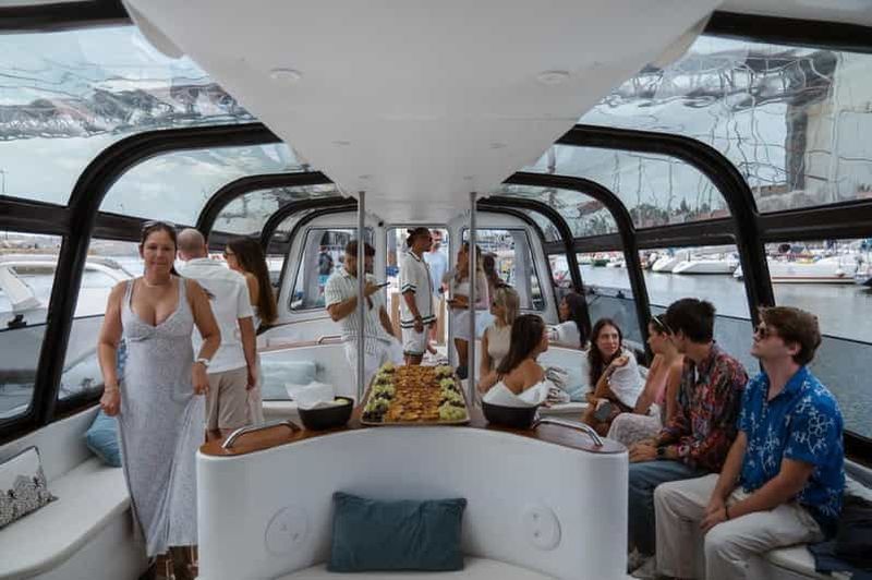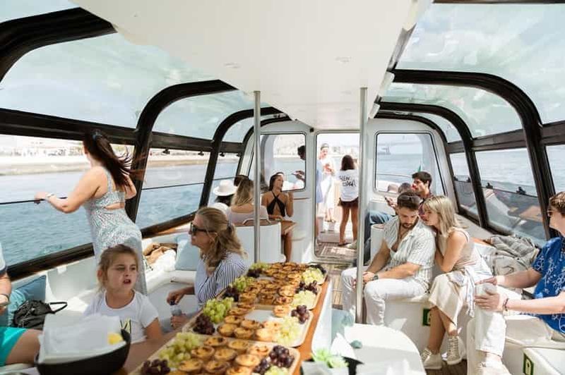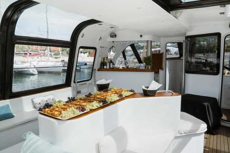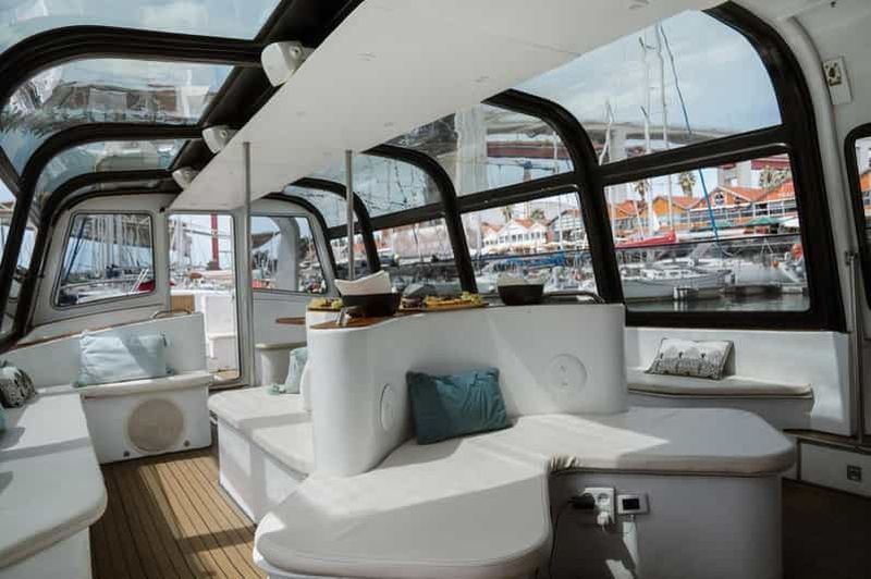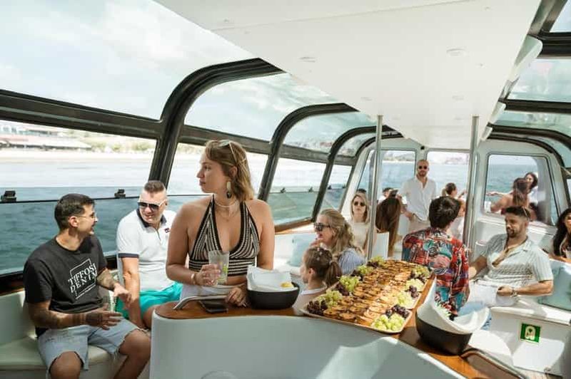 Une élégante croisière sur le Tage avec open bar, buffet portugais, vues emblématiques de Lisbonne, possibilité d'observation des dauphins et confort sous une verrière.