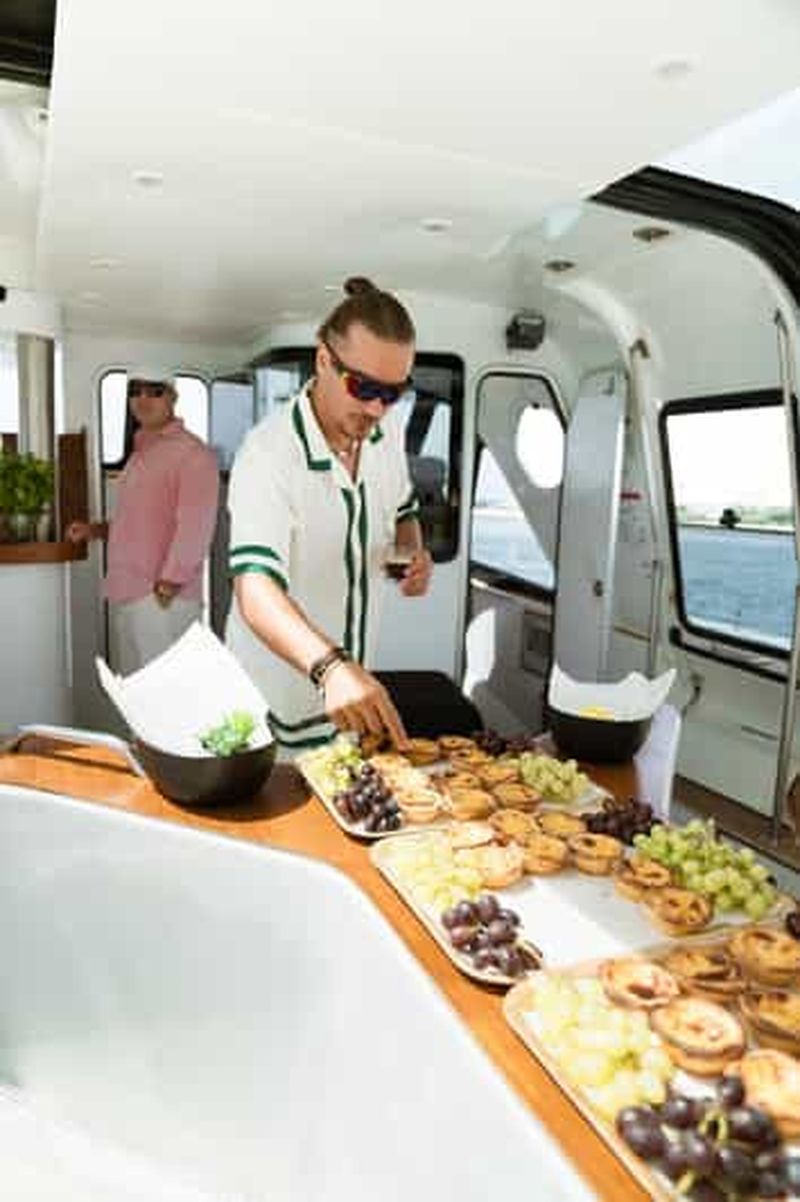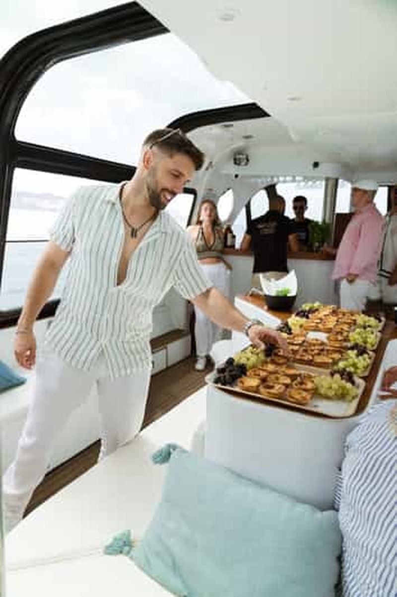 Depuis les pontons de Belém, cette sortie de 1h30 propose tapas portugaises (queijo, presunto, pastéis) et un verre pour 35-42€. Le bateau remonte vers l’Alfama ou descend vers l’embouchure selon l’heure, toujours en longeant la rive nord où la lumière dorée accroche magnifiquement les façades ocres en fin d’après-midi. Ambiance décontractée, tables installées sur le pont arrière, idéale pour les groupes d’amis ou ceux qui préfèrent le convivial à l’historique.