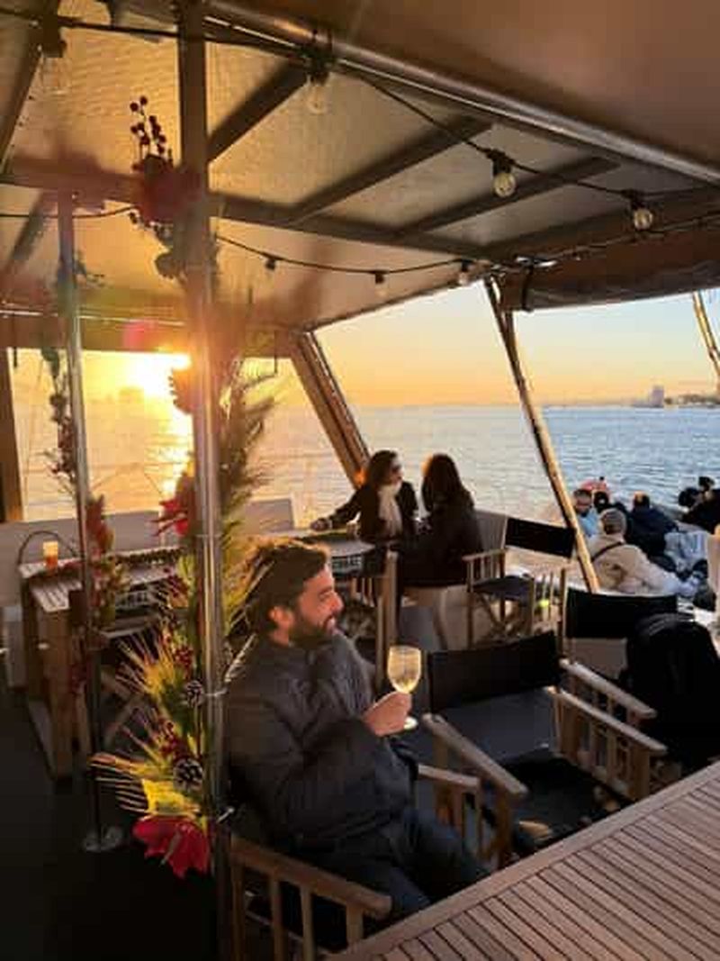 Cette croisière de deux heures attire une clientèle jeune et les groupes d’amis cherchant une ambiance dynamique. Les tarifs varient entre 45 et 65 euros par personne, incluant open bar basique (bière, sangria, softs) et musique animée par un DJ. Le départ se fait généralement depuis un quai proche des anciens docks rénovés, facilement accessible depuis les transports qui longent le fleuve (zone de Santos ou LX Factory). Les groupes atteignent souvent 30 à 40 participants, créant une ambiance conviviale sans être étouffante.