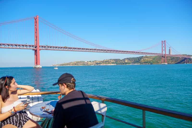 Admirez les monuments emblématiques de Lisbonne depuis le Tage lors d'une croisière relaxante. Savourez un verre de bien...
