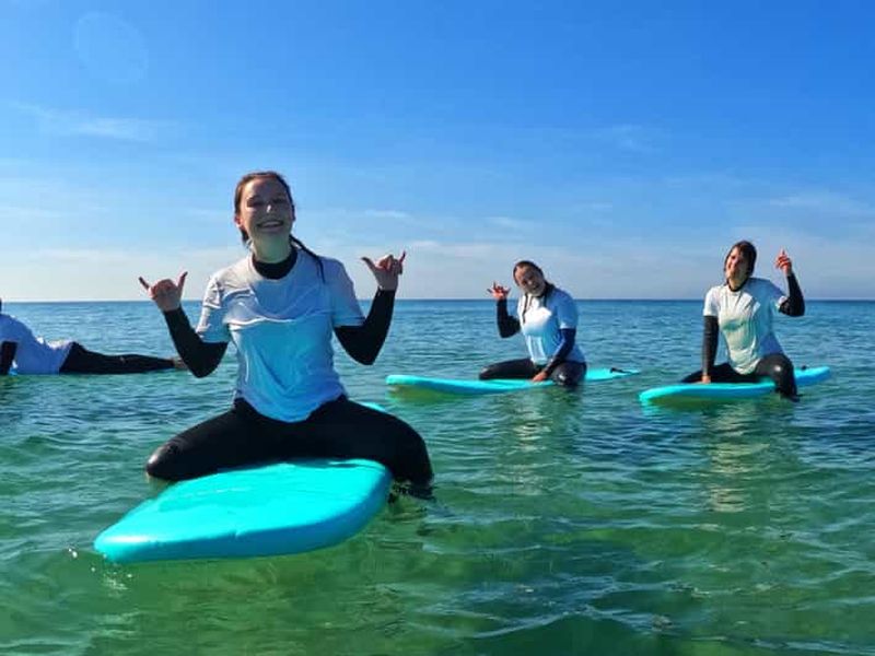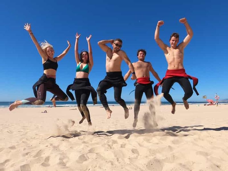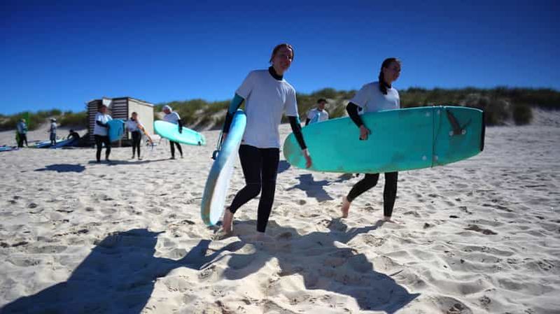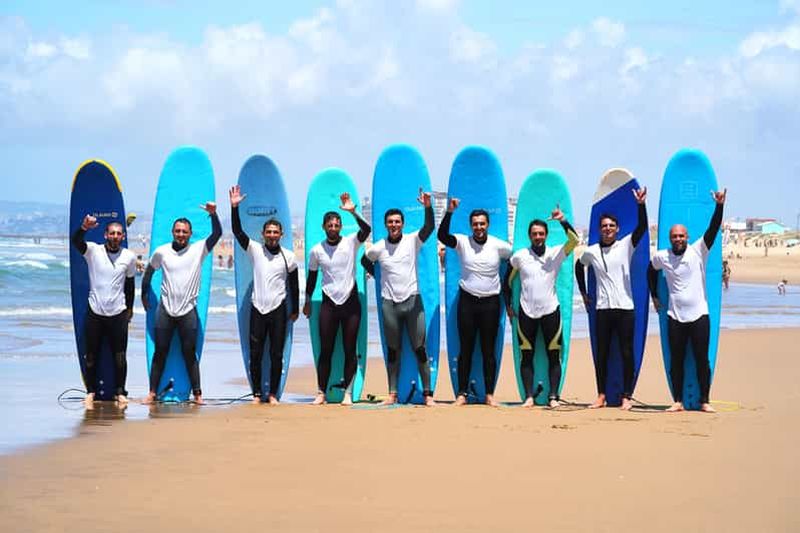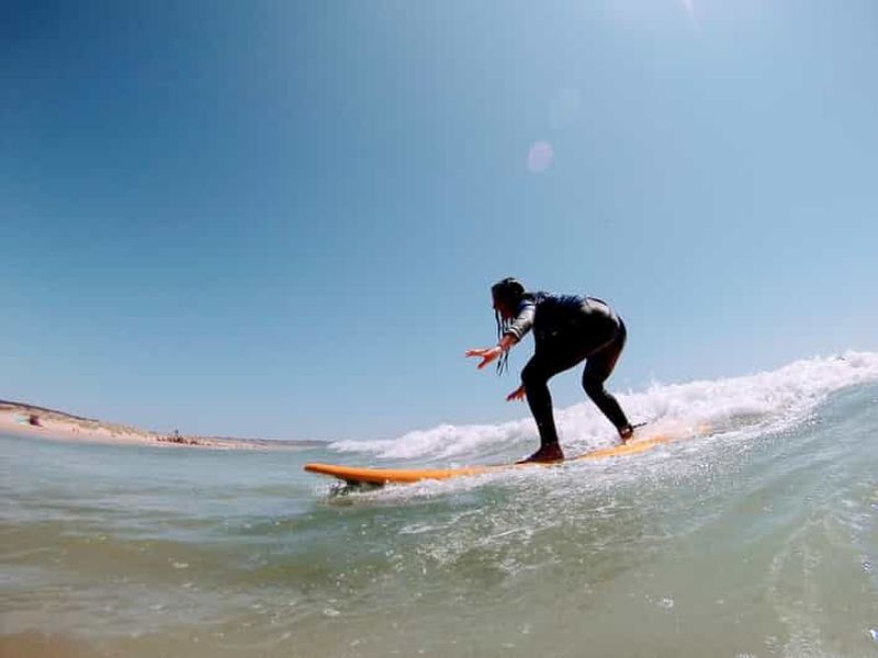 Cette option de 4 heures comprend le transport de Lisbonne à la plage de Caparica et retour, le temps de préparation et une expérience de surf de 2 heures.