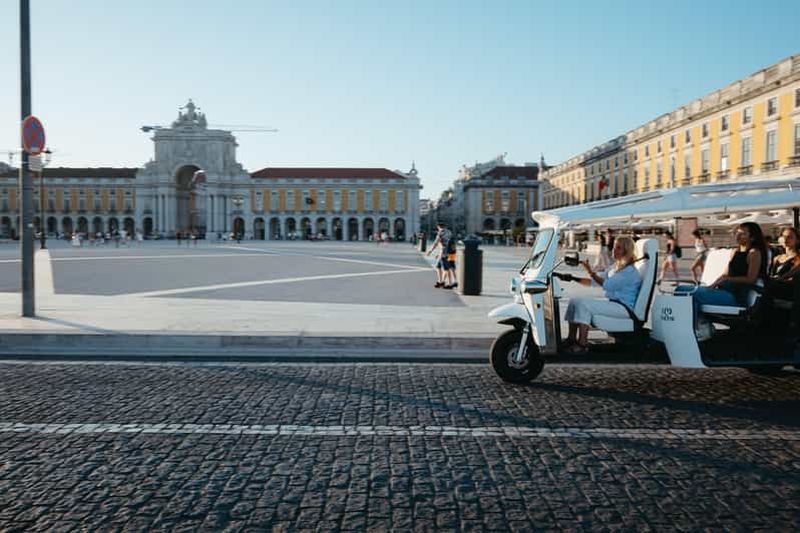 Lisbonne : Visite privée de la ville avec repas et vin en Eco Tuk Tuk