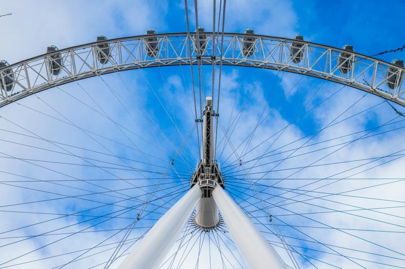Le London Eye est unique car c’est la plus grande roue d’observation en porte-à-faux, un exploit d’ingénierie qui signifie qu’il n’a pas de structure centrale. Soutenue par des câbles tendus, la roue semble flotter dans le ciel. Son design unique et innovant a été central à sa construction, nécessitant la collaboration de plusieurs équipes d’ingénieurs, notamment des experts en aéronautique et architectes.