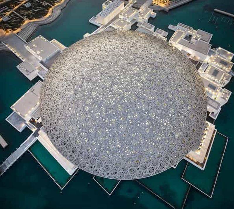 La coupole saisissante, conçue par l’architecte Jean Nouvel, coiffe ce musée ouvert en 2017. Inspirée des palmeraies traditionnelles, elle crée un jeu d’ombre et de lumière surnommé la « pluie de lumière ». Composée de motifs entrelacés, sa structure en acier et aluminium recouvre une vaste superficie et culmine à 36 mètres. Ce design novateur, qui fusionne modernité et histoire arabe, a déjà séduit des visiteurs venus du monde entier.