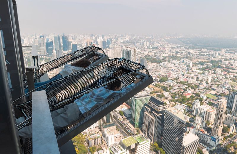 Le célèbre plancher de verre, connu sous le nom de Glass Tray, a fait parler de lui depuis son lancement en 2018. Suspendu à plus de 300 mètres, il offre une sensation unique d’apesanteur lorsque vous regardez sous vos pieds la ville de Bangkok. Sécurisé par des technologies de pointe, ce plateau transparent peut accueillir plusieurs visiteurs à la fois. Oserez-vous marcher sur cette surface audacieuse pour un frisson garanti?