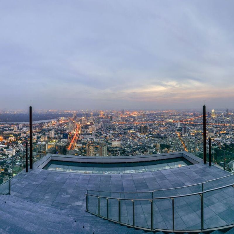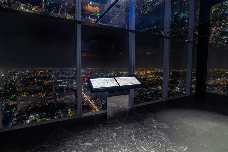Au sommet, découvrez plusieurs plateformes d’observation, dont un espace intérieur et un rooftop panoramique, inaugurés fin 2018. Elles offrent une vue à 360 degrés sur la métropole, idéale pour photographier Bangkok sous tous ses angles. The Peak, point culminant du bâtiment, vous permet même de ressentir le vertige de la hauteur. À plus de 300 mètres, vous profiterez d’un moment mémorable, particulièrement spectaculaire au coucher du soleil sur la ville.