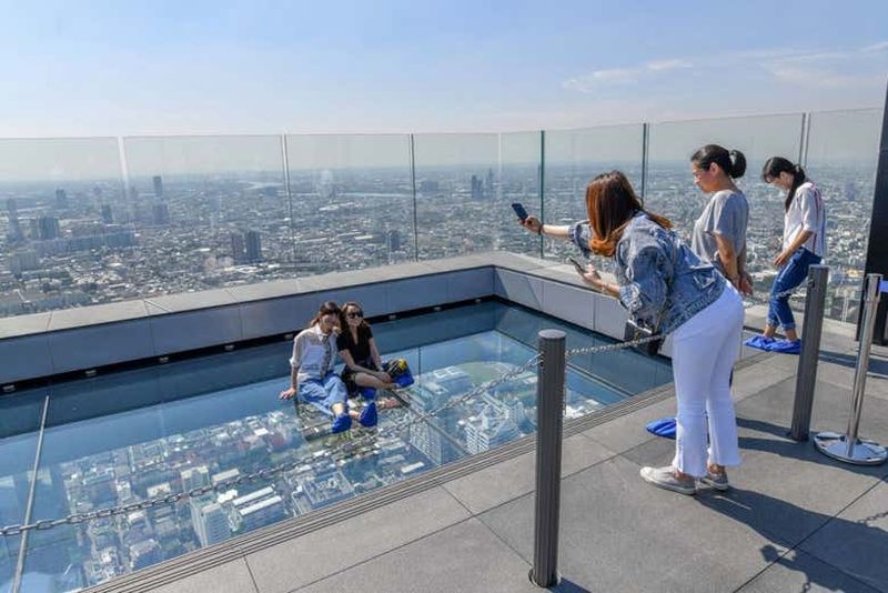 Le célèbre plancher de verre, connu sous le nom de Glass Tray, a fait parler de lui depuis son lancement en 2018. Suspendu à plus de 300 mètres, il offre une sensation unique d’apesanteur lorsque vous regardez sous vos pieds la ville de Bangkok. Sécurisé par des technologies de pointe, ce plateau transparent peut accueillir plusieurs visiteurs à la fois. Oserez-vous marcher sur cette surface audacieuse pour un frisson garanti?