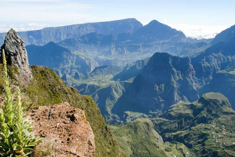 Depuis le belvédère principal, admirez l’un des plus beaux panoramas de l’île : une vue à couper le souffle sur le cirque de Mafate et la baie de Saint-Paul au loin. Construit pour maximiser l’observation, notamment au lever du soleil, cet espace attire de nombreux photographes en quête de clichés saisissants. Une fois sur place, la géologie de cette caldeira et son histoire n’auront plus de secrets pour vous.