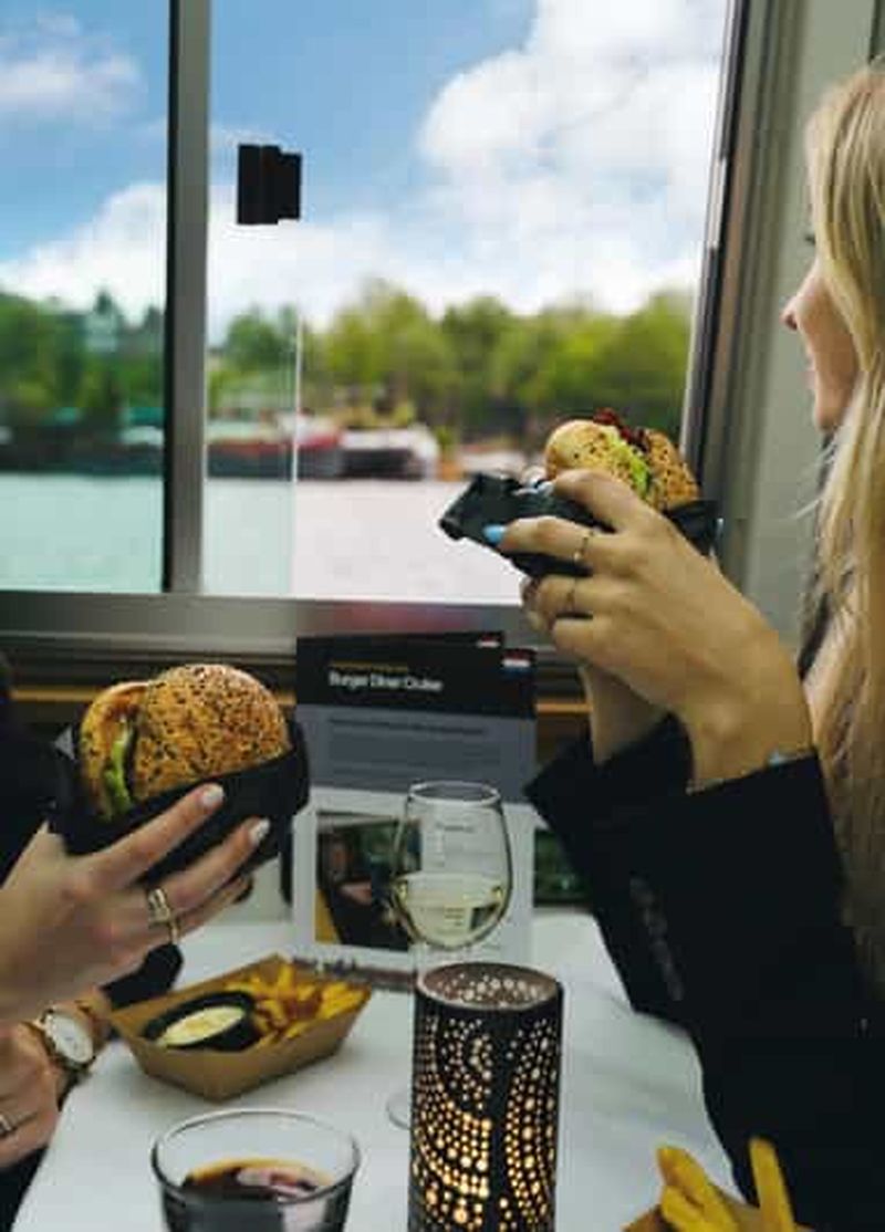 Dîner-croisière sur les canaux d'Amsterdam avec un burger à la viande. 1 boisson incluse